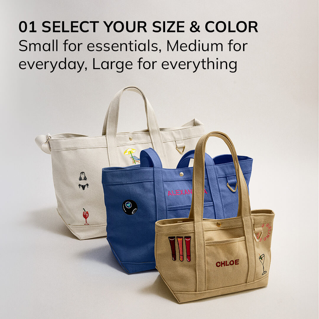 Available in three sizes, choose the tote that fits your lifestyle: Mini is perfect for the essentials, Medium is your go-to for daily outings, and Large truly fits it all (laptop, water bottle and so much more).