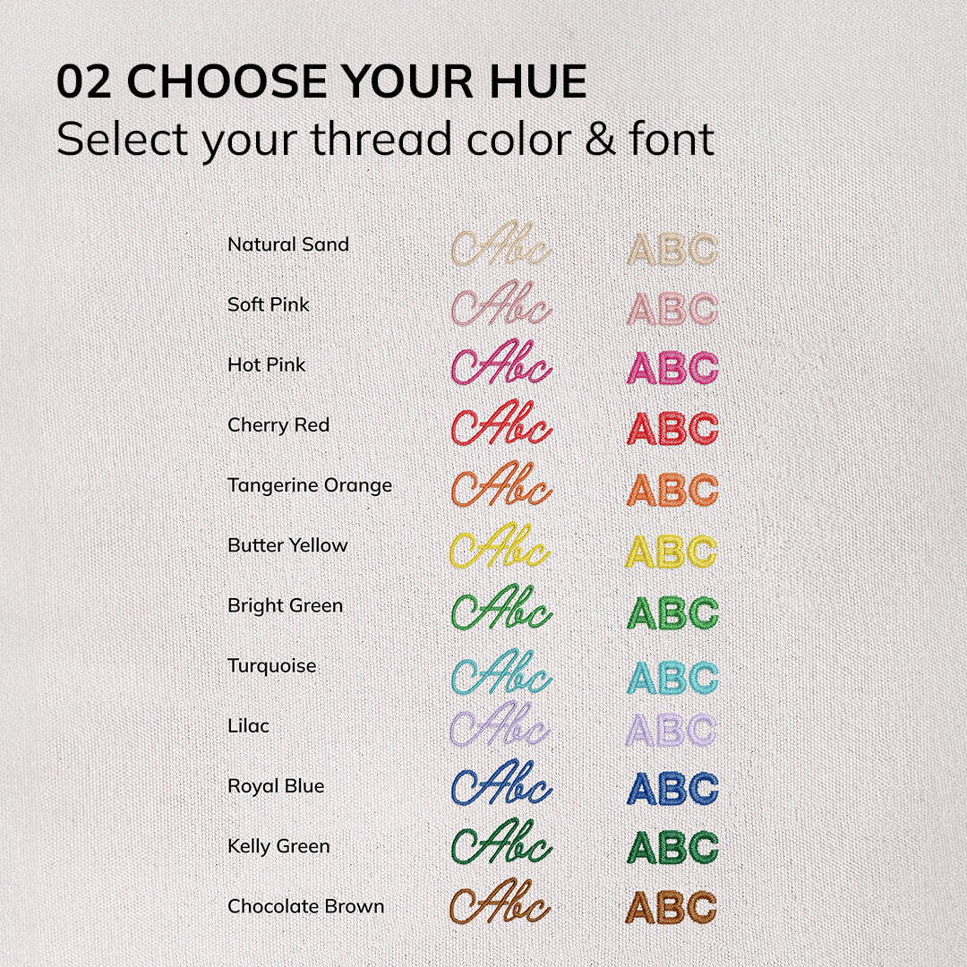 Each customization is carefully embroidered onto the canvas before your bag is assembled