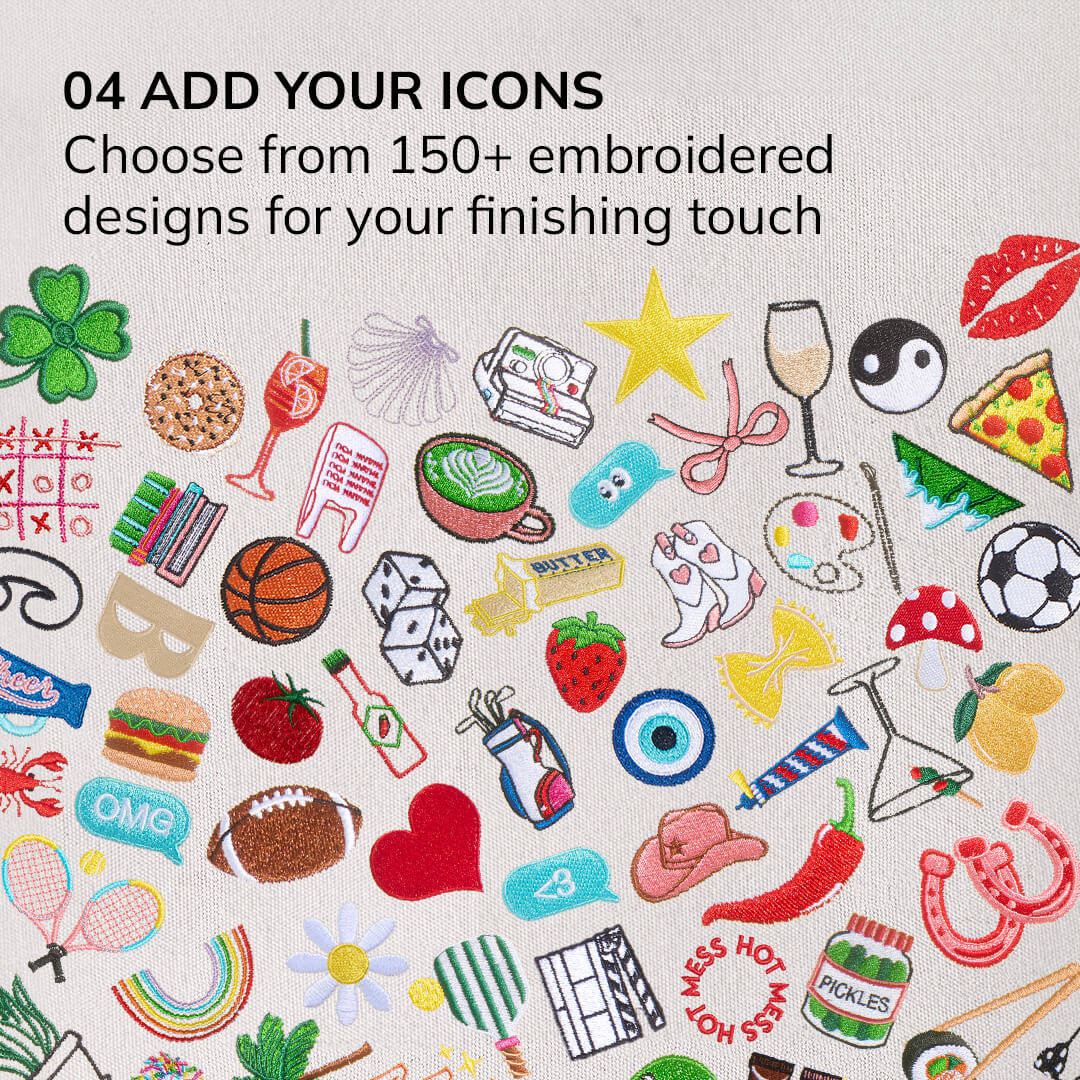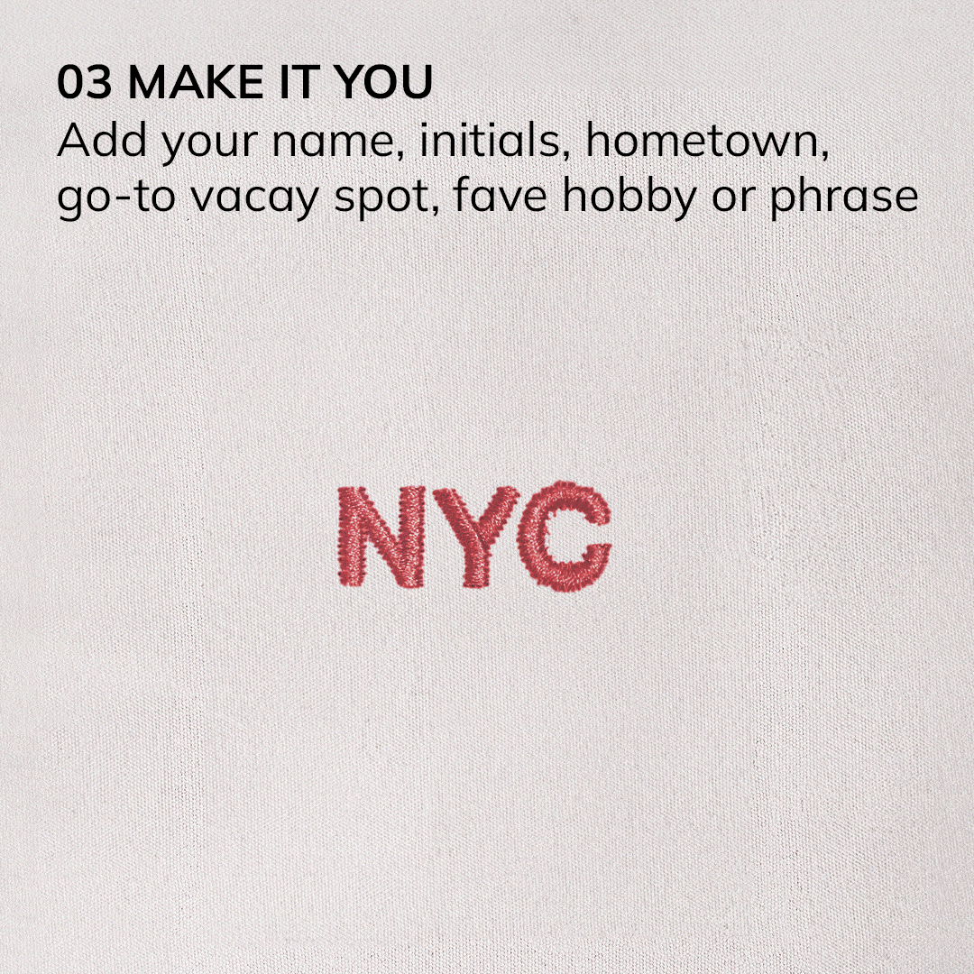 Make it yours with up to 6 customizable placements — add a name, initials, or hand-drawn icons that bring you joy