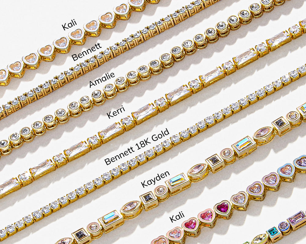 Introducing the Eva Tennis Bracelet, a modern tennis bracelet that’s crafted with scattered, asymmetrical crystals. A unique take on a timeless style, this bracelet is perfect for everyday glam or special occasions. Wear it alone or pair it with others to create your perfect wristack — it looks great either way.