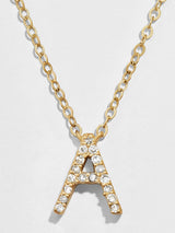 A luxe touch of sparkle in the form of petite diamonds embellish this alpha pendant in an easy way to dress up any neckline. Ideal for those who love their everyday accessories with a touch of the unexpected, this piece look equally on-point when layered with other delicates. This necklace comes complete with a luxe black storage pouch.