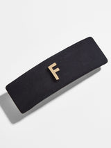 Easily update every 'do with a little touch of something personal. A wide black barrette comes embellished with a block gold initial.