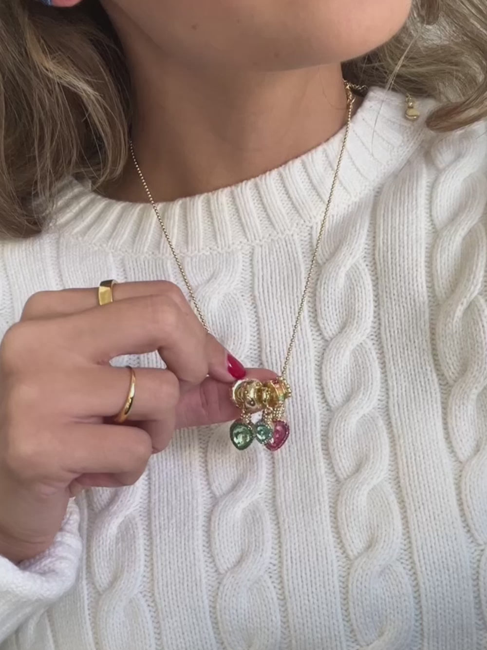 - Three vibrant holiday light bulbs charms with bright pavé detailing