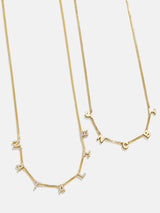 We took one of our favorite custom styles and turned it into a necklace. The Mini 18K Gold Spaced Letter Custom Name Necklace fits up to seven letters of your choice and features elegant negative space in between each character. It's also crafted with 18K Gold, so you'll get to wear it for years to come.