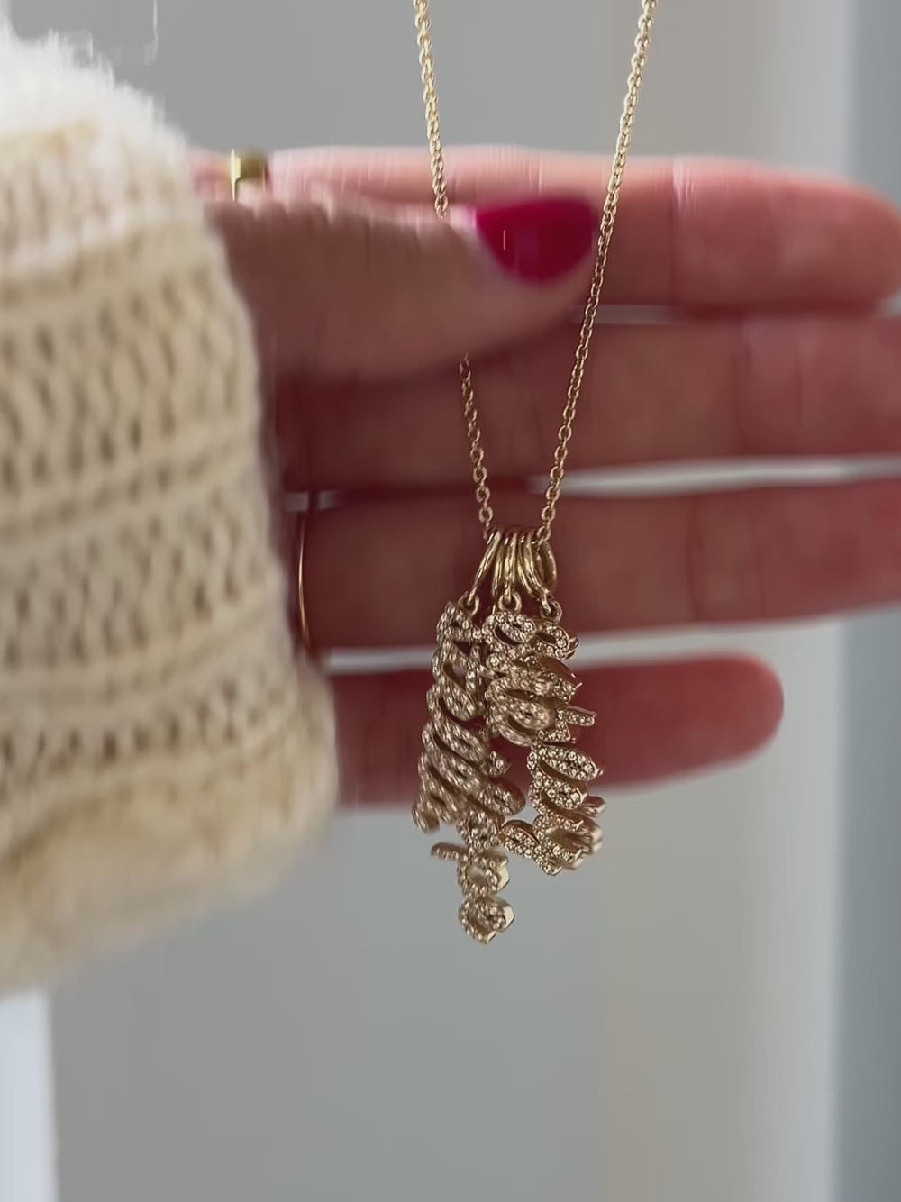Our best-selling nameplate necklace — now available in our much-loved cluster design so you include all your favorite names and phrases in one special accessory.