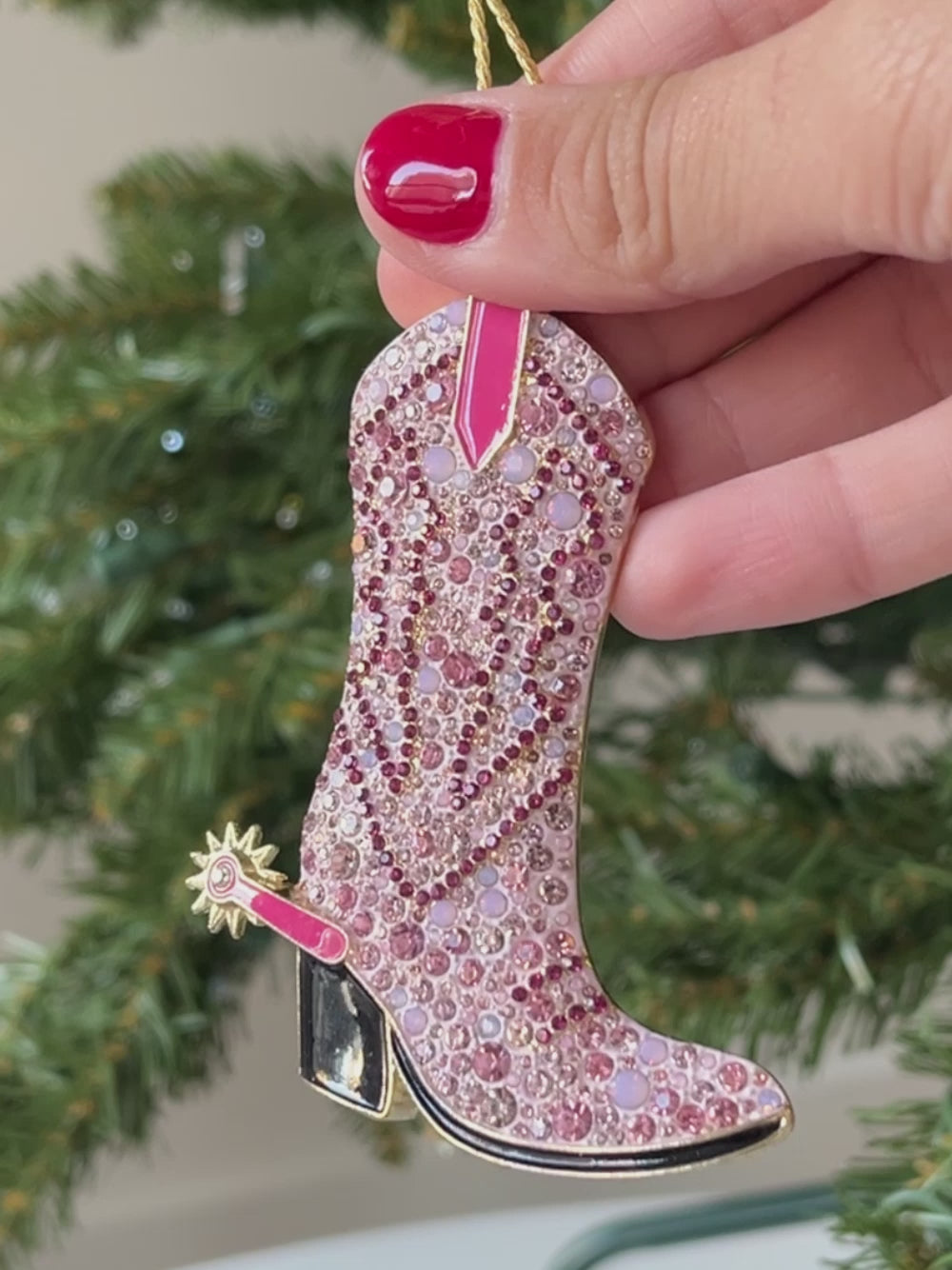 - Pink cowgirl boot ornament, hand set with bright crystals